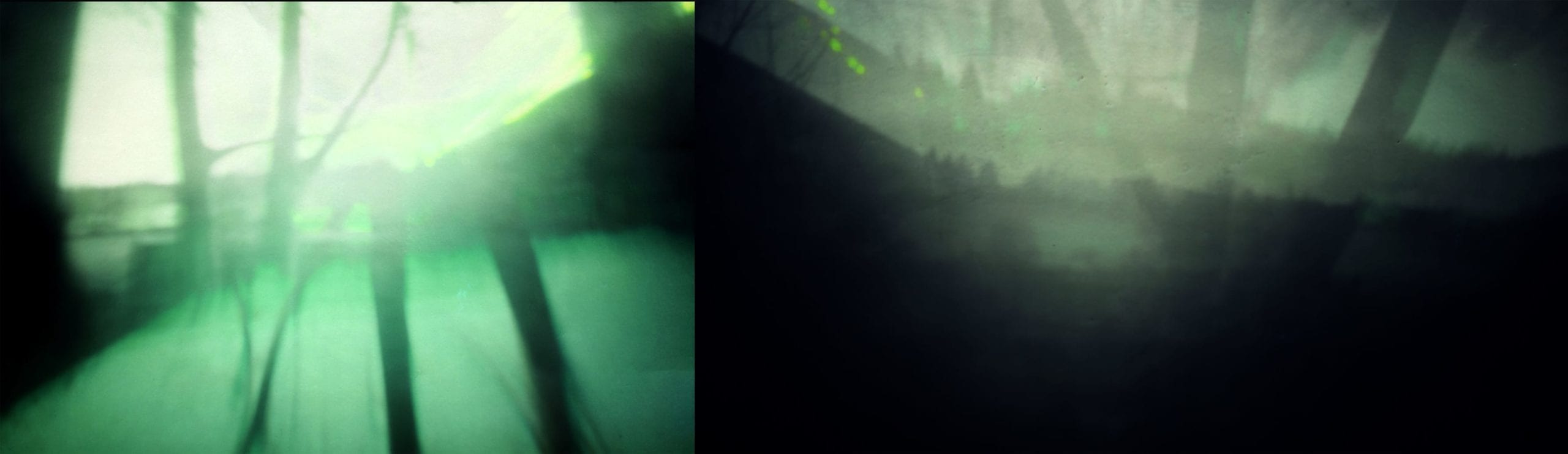 Another major player in the two hole pinhole camera world is Eric Riedel, a fellow Sunny Arms artist coop member. Eric has made over 20 exposures over the last few years and his images are stunning. He generally exposes the images for just three weeks. Here is a pinhole image he made in collaboration with Barry Christensen.. it is four hole camera–Eric and Barry each exposed two holes.